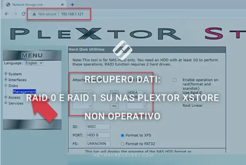 Recupero dati: RAID 0 e RAID 1 su NAS Plextor XStore non operativo